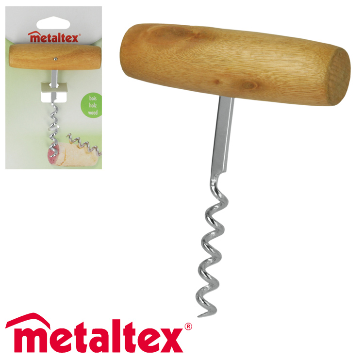 Korkkiruuvi, puukahva, perinteinen, Metaltex