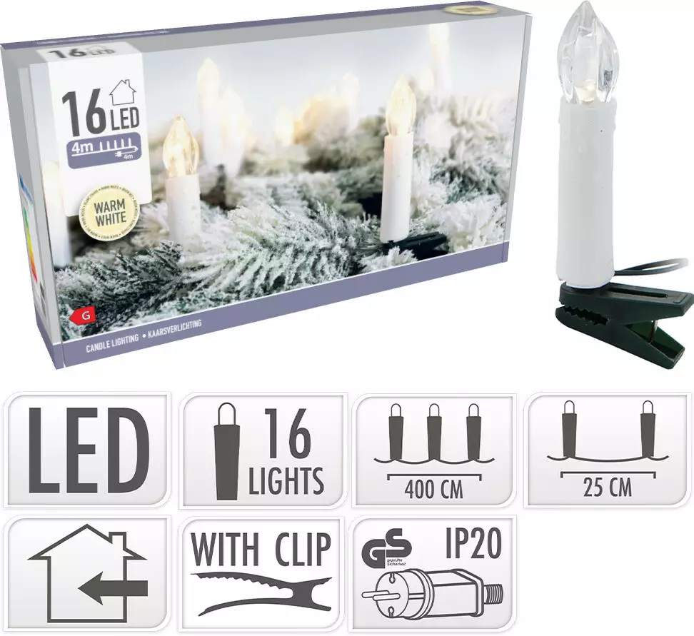 Kuusenkynttilät 16 LED, lämmin valkoinen