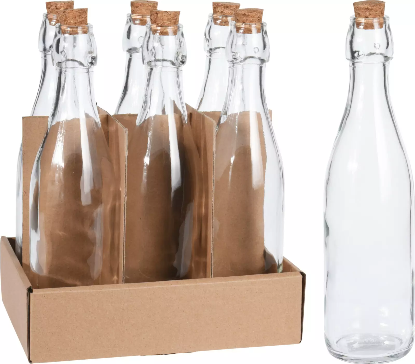 Ajaton ja monikäyttöinen lasipullo sopii veden, mehun, öljyn tai muiden juomien ja nesteiden säilytykseen. Luonnonkorkki antaa pullolle viimeistellyn ja hillityn ilmeen, joka sopii sekä arkeen että kattaukseen.