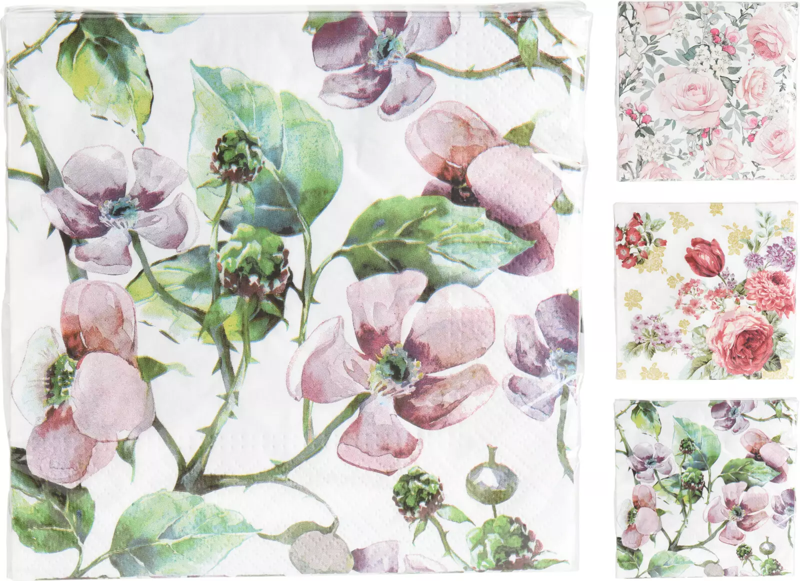 Kauniit kukalliset paperiservetit, jotka viimeistelevät kattauksen arkeen ja juhlaan. Reilun kokoinen servetti sopii hyvin niin kahvipöytään kuin ruokailuun.