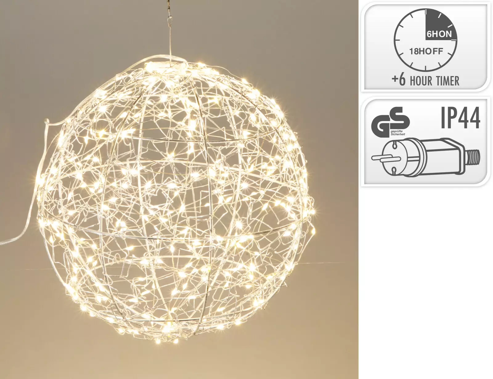 Avainsanat: LED-valopallo, Lumo, hopea, 35 cm, tunnelmavalo, lämmin valkoinen, ajastintoiminto, IP44, sisä- ja ulkokäyttö, puutarhavalaisin