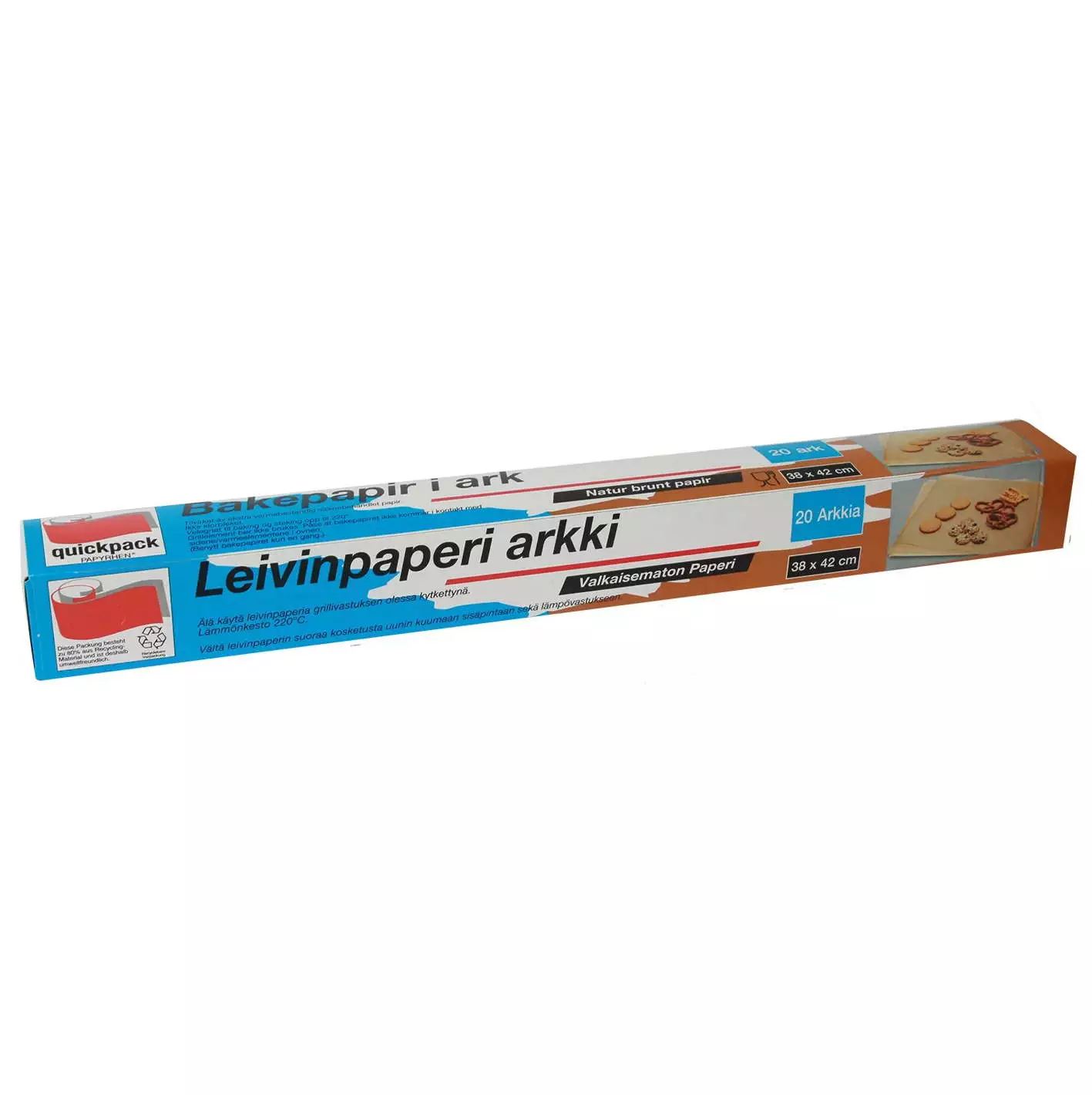 LEIVINPAPERI ARKKI 20 ARKKIA Pakkauksessa 20kpl valmiiksi leikattuja leivinpaperiarkkeja. Sopii kaikkiin yleisimpiin uunipelteihin tms suoraan. Arkin mitat 38x42cm