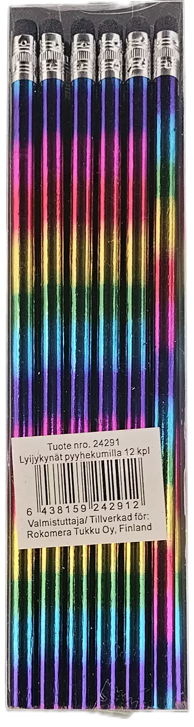 Lyijykynät pyyhekumilla – 12 kpl sateenkaarivärit Hauskat ja värikkäät lyijykynät pyyhekumilla piristävät niin koulua, toimistoa kuin kotitehtäviä. Jokaisessa pakkauksessa on 12 kynää... Lue lisää