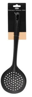 Handy reikäkauha on hellävarainen tarttumattomille pinnoille. Lämmönkesto 210 astetta. Konepesun kestävä.