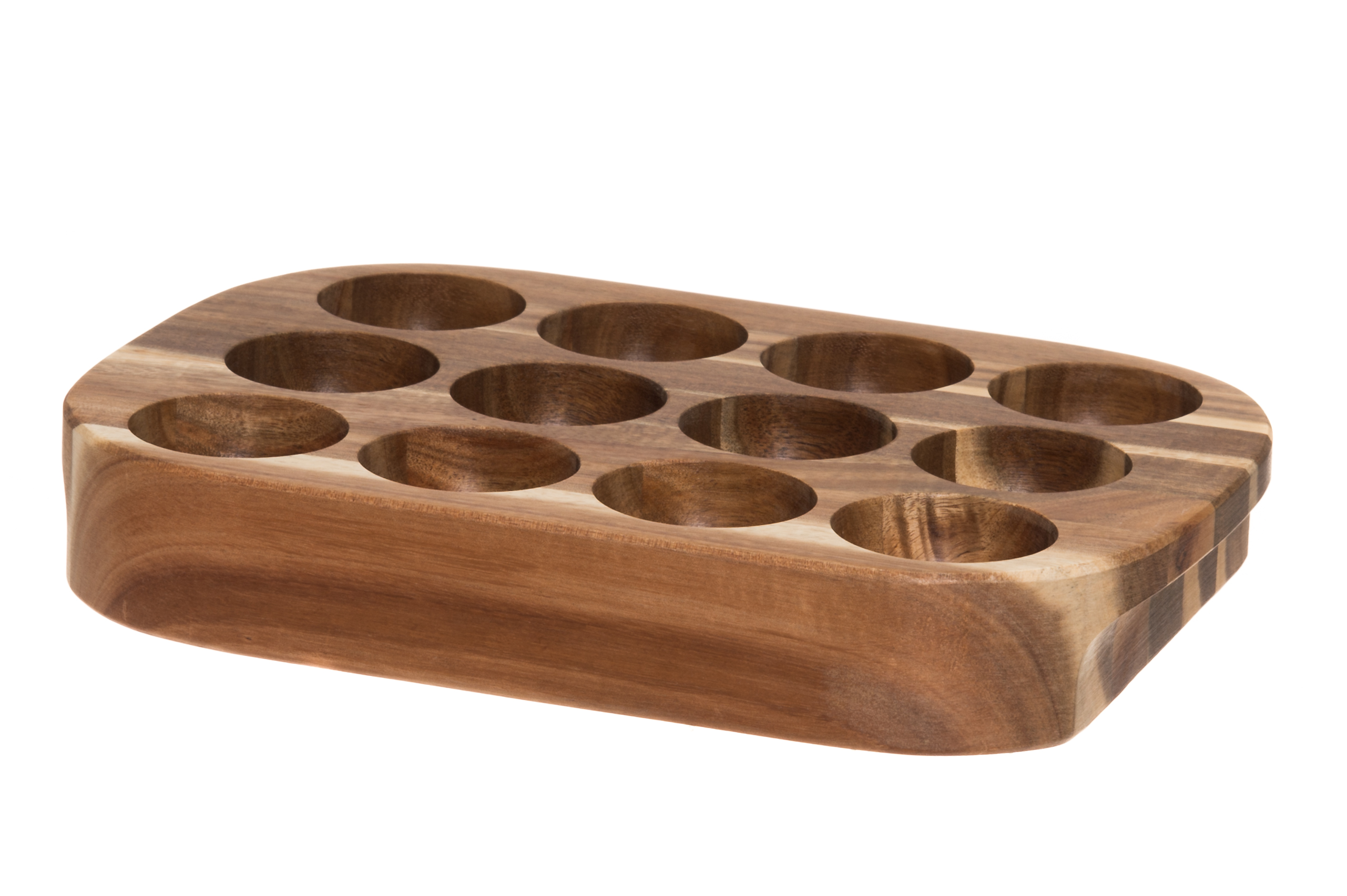 Akaasiapuusta valmistettu jämäkkä tarjotin, jossa paikka 12 kananmunalle. Sopii sekä säilytykseen että tarjoiluun.