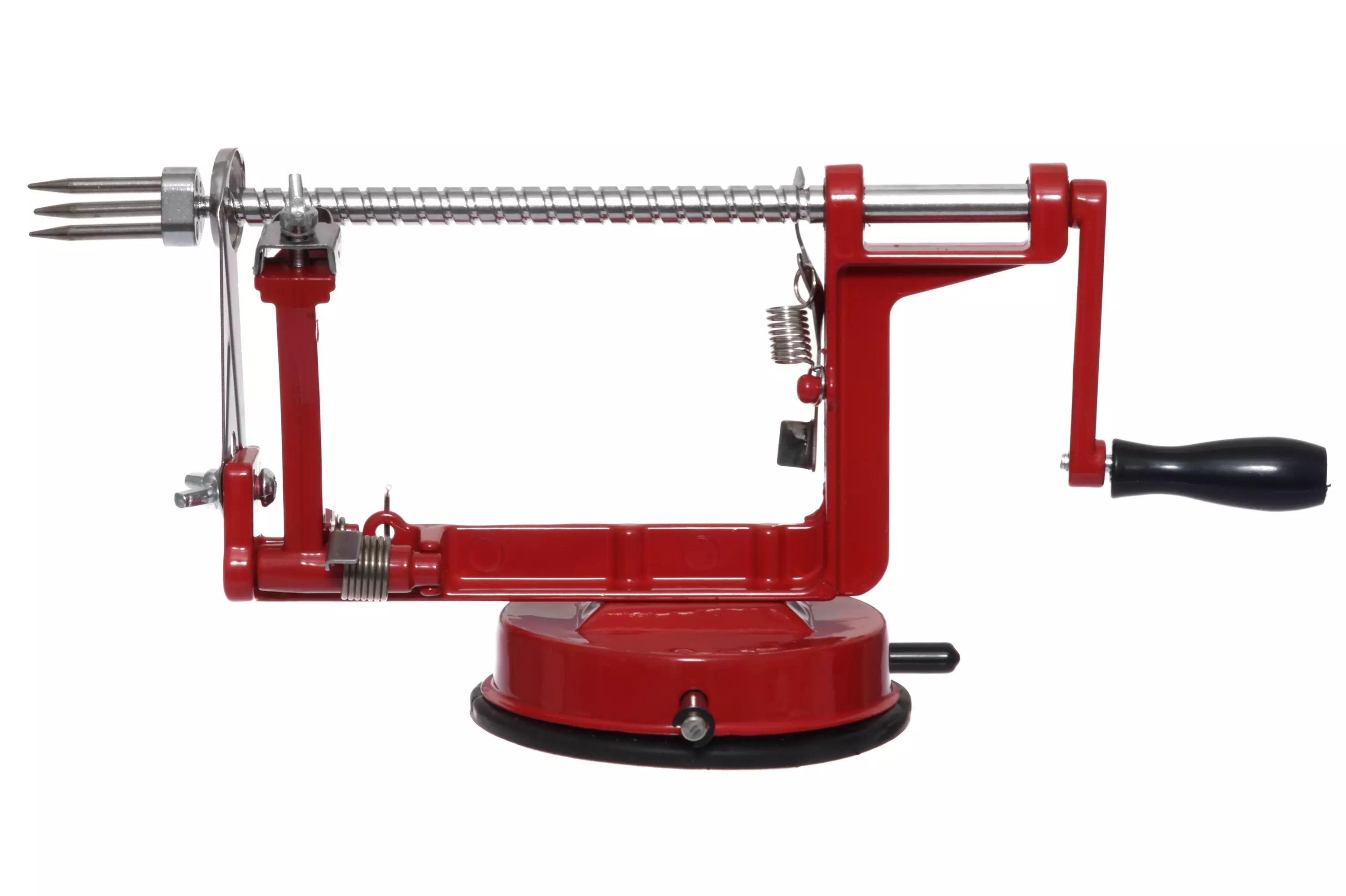 Omenoista kuoret ja kodat pois kätevästi. Sorvi myös viipaloi omenan niin haluttaessa, erinomainen apuväline jokaiselle omenoista pitävälle jauhopeukalolle ja omenapuun omistajille. Sorvin pohjassa on voimakas imukuppi, jolla se saadaan tukevasti esim. keittiön pöytään kiinni.