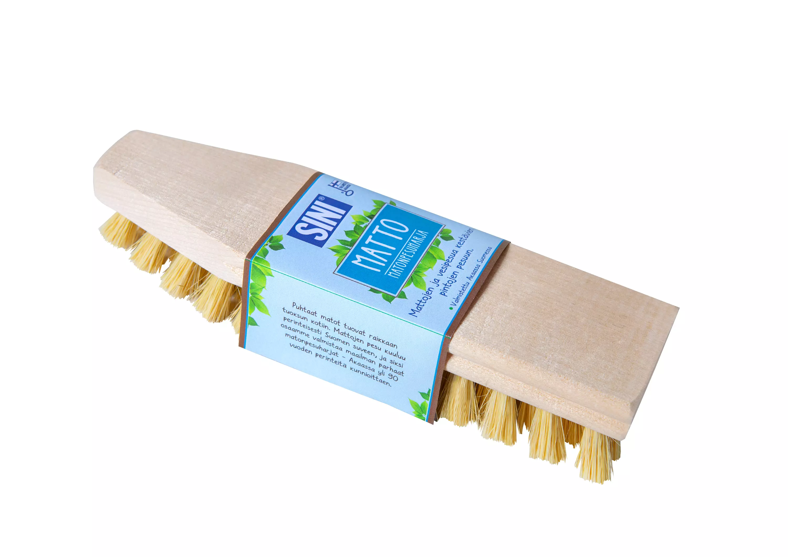 Hellävaraiset harjakset luonnonkuitua. Kaikille vesipesua kestäville pinnoille. Valmistettu Akaassa Suomessa – Avainlipputuote.