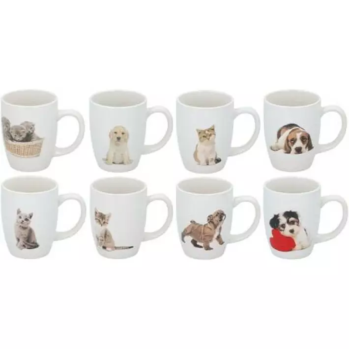 •Tuo iloa kahvi- ja teehetkiisi tällä suloisella mukilla! Saatavilla kahdeksan erilaista kissa- ja koirakuosia, jotka ilahduttavat eläinten ystäviä.