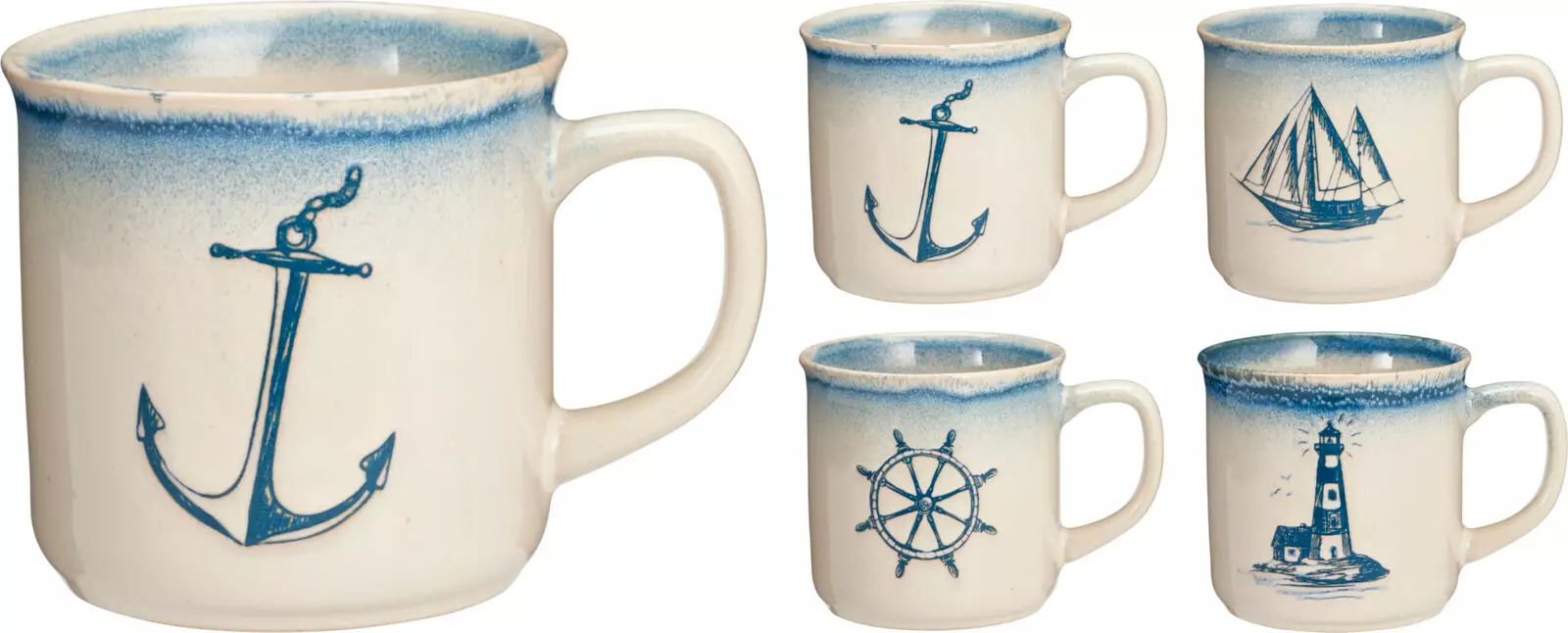 Mukit 300 ml – meriaihe (4 vaihtoehtoista kuosia) Merihenkinen kivitavaramuki reaktiivisella lasituksella. Sopii kahville, teelle tai kaakaolle. Ominaisuudet • Tilavuus: 300 ml • Materiaali:... Lue lisää