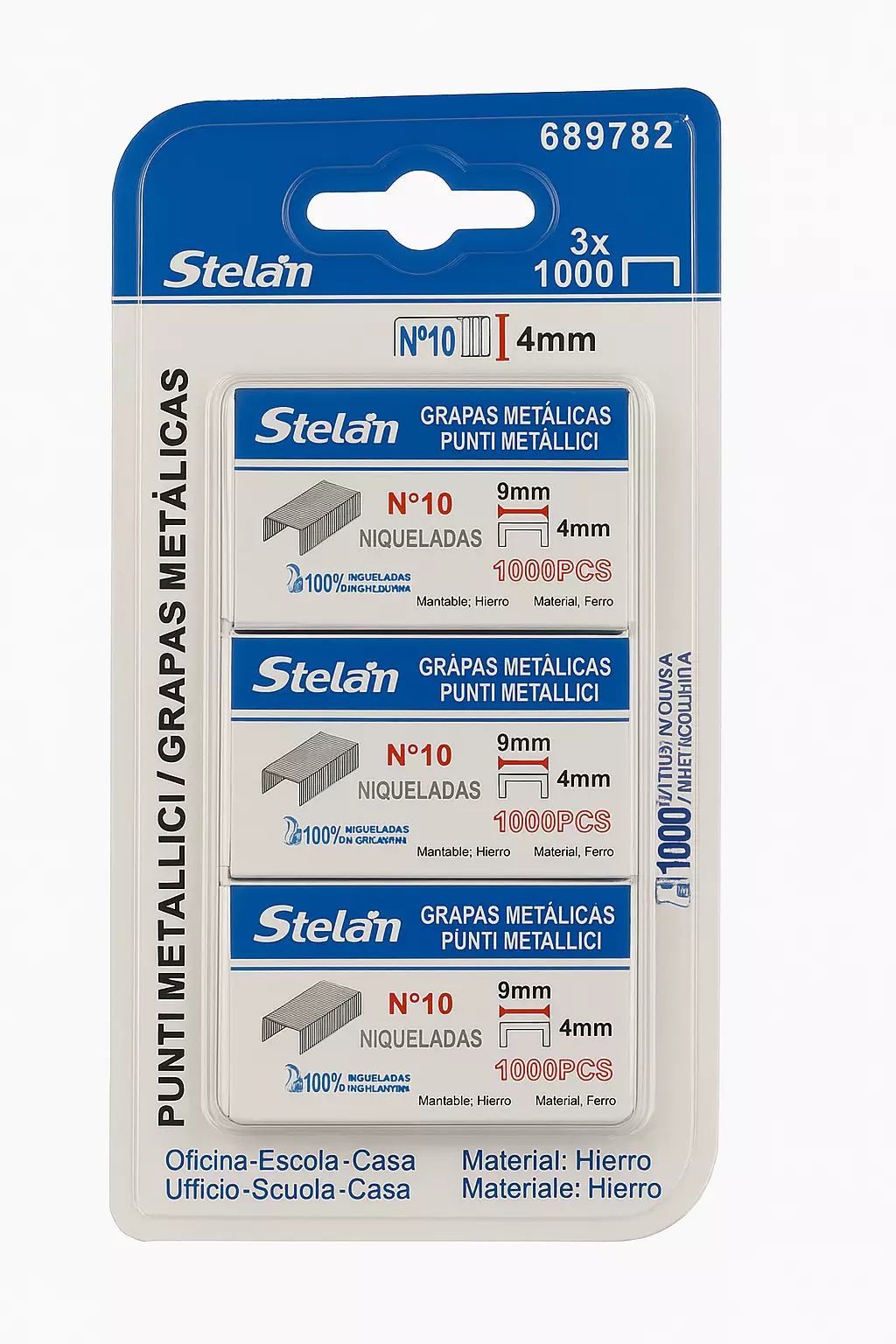 Pakkauksessa on 3 laatikkoa, yhteensä 3000 niittiä, joten ne riittävät pitkäksi aikaa toimistoon, kouluun tai kotiin.