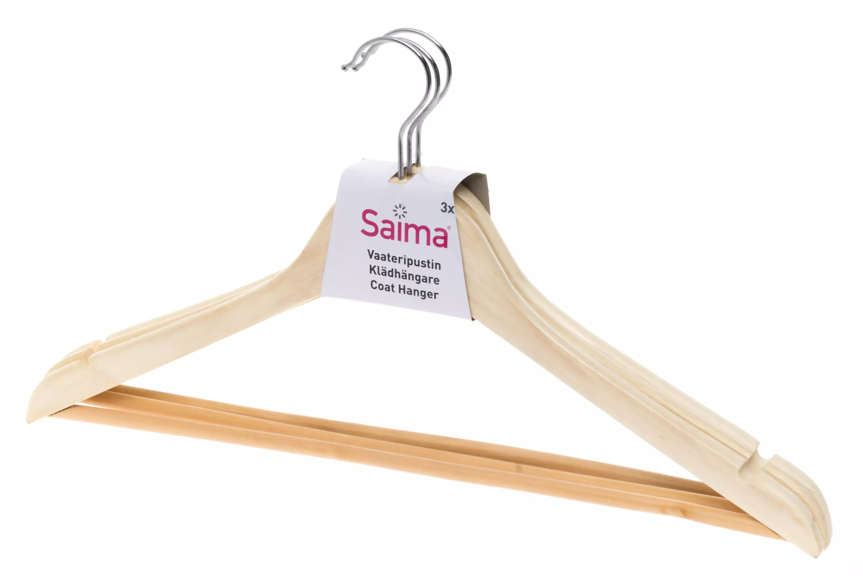 Puisessa henkarissa on pyöreä välipuu, hamelovet ja kääntyvä koukku.