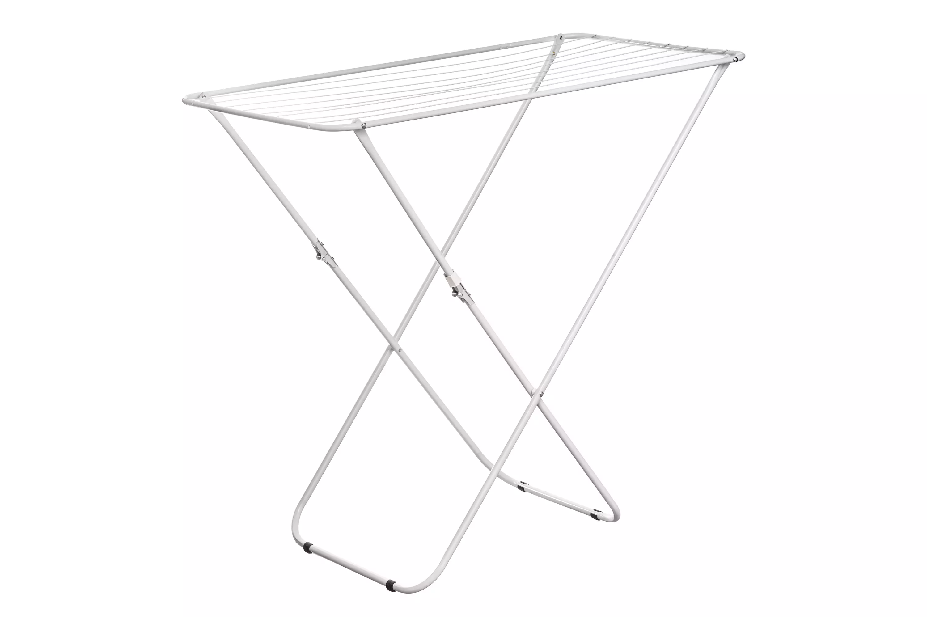 Kuivausteline pyykin ripustamista varten. Voidaan taittaa kokoon tilan säästämiseksi, kun teline ei ole käytössä. Kuivaustilaa 10 m. Koko avattuna 105 x 55 x 95 cm.