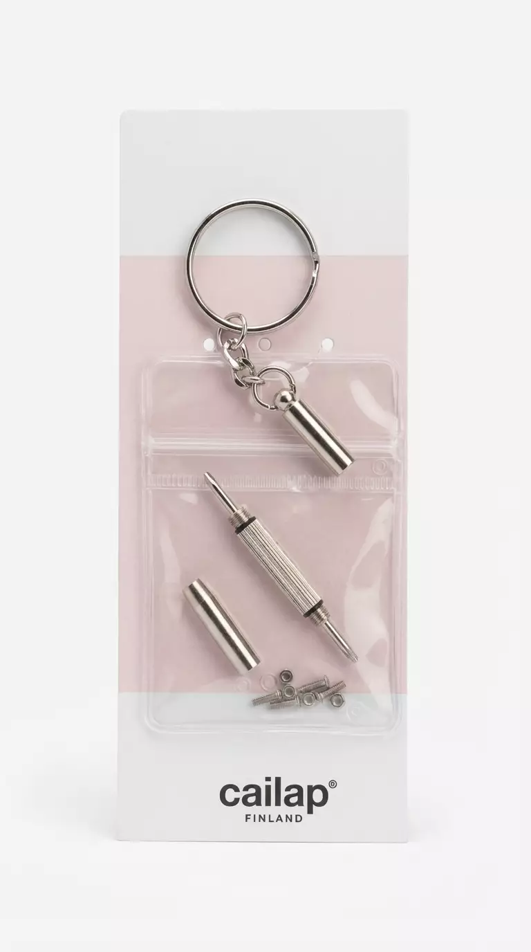 Työkalussa on kaksi eri ruuvimeisselipäätä: toisessa päässä ristipää (tähti) ja toisessa tasapäinen meisseli, joten se soveltuu useimpiin silmälasien ruuveihin. Mukana tulevat vararuuvit helpottavat korjausta, jos alkuperäinen ruuvi katoaa.