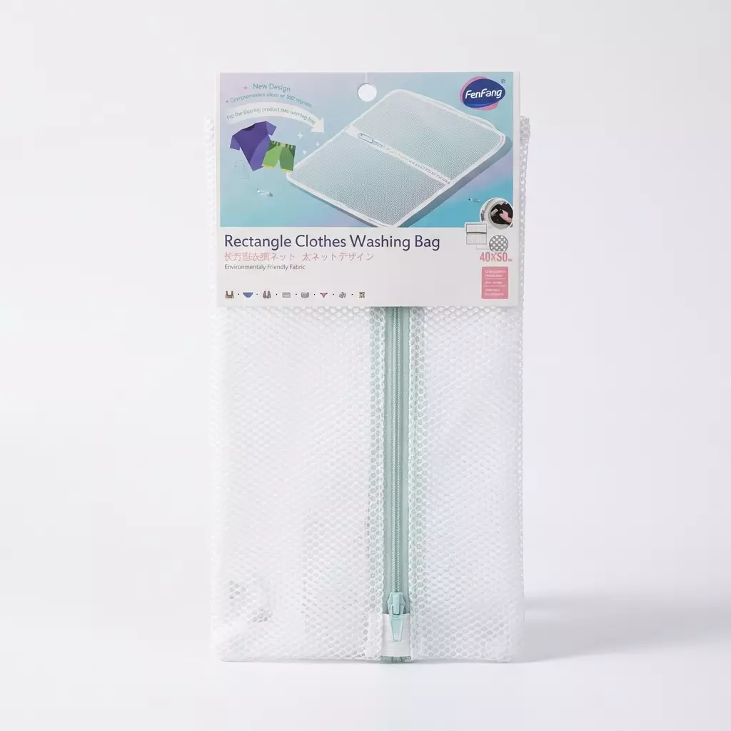 Hienosilmäinen verkkokangas päästää veden ja pesuaineen kulkemaan läpi, mutta suojaa vaatteita venymiseltä, takertumiselta ja kulumiselta pesun aikana. Vetoketjullinen sulkeminen pitää pyykit turvallisesti pussin sisällä koko pesun ajan.