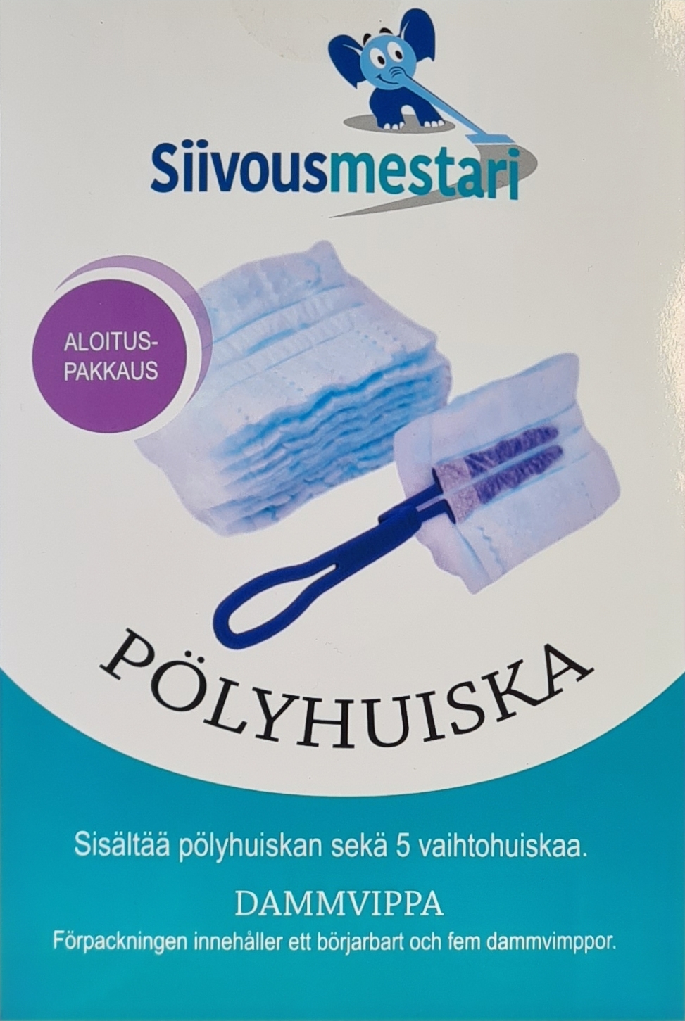 Sisältää pölyhuiskan sekä 5 vaihtohuiskaa.