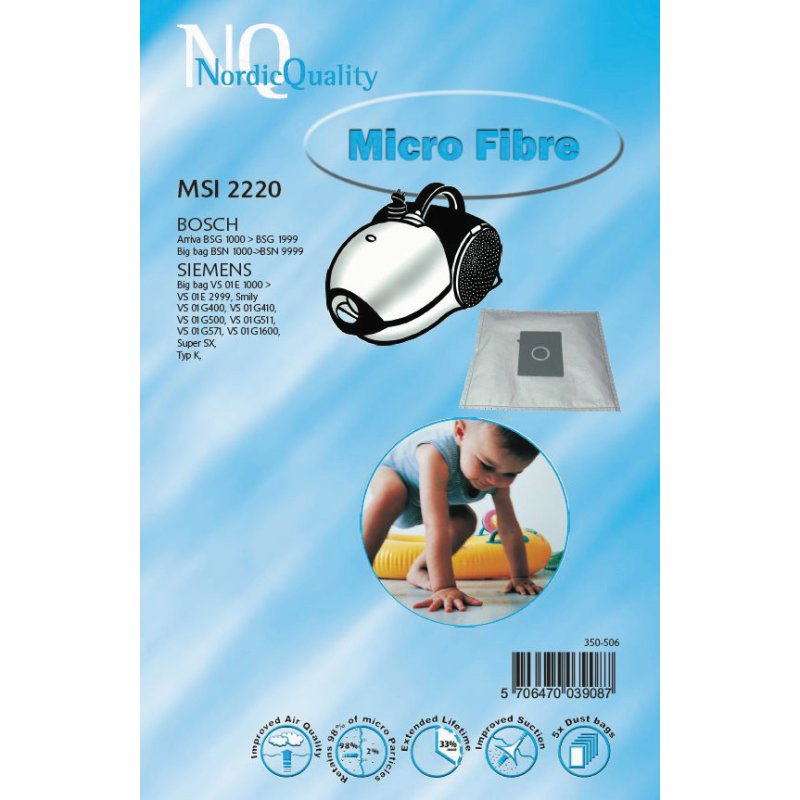 Mikrokuitupölypussit, puhtaampi ilma kuin tavallisia paperipusseja käytettäessä. Noin 3 kertaa parempi suodatuskyky kuin tavallisessa paperipussissa 4-kerroksisen rakenteen ansiosta. Pussi pitää sisällään 98% kaikista pölypartikkeleista (DIN 44956 testattu).
