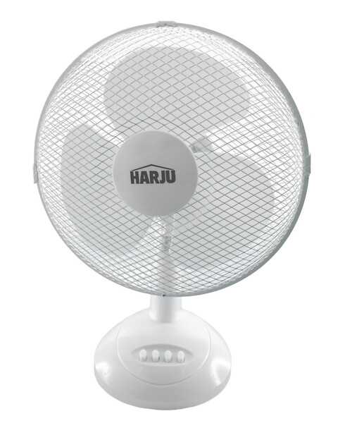 Viilennykseen kätevänkokoinen Harjun 40 W pöytätuuletin, jossa kolme pyörimisnopeutta. Oskillointitoiminto.