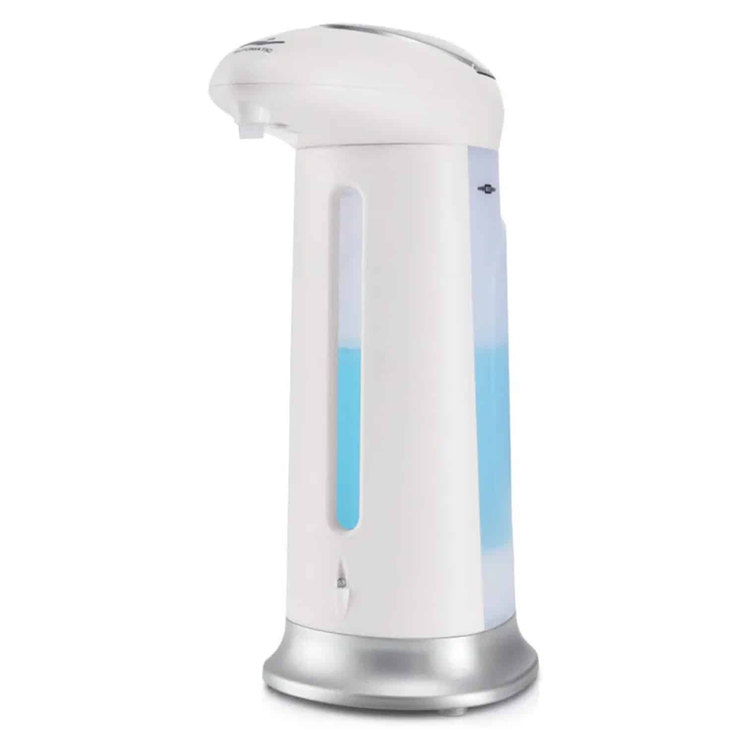 Automaattinen saippua-annostelja ja käsidesiautomaatti, tyylikäs 330 ml pöytämalli. Laite toimii AAA paristoilla joten erillistä verkkovirtaa ei tarvita.