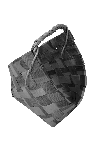 Kaunis puinen puunkantokori. Korkeus n.54cm, leveys n.30cm.