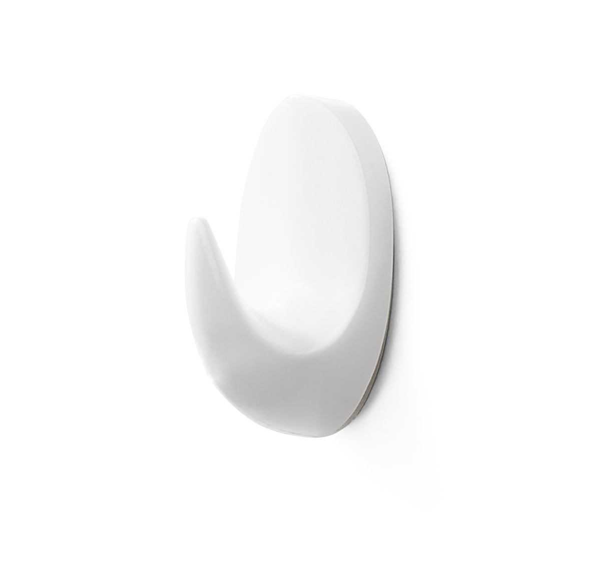 Koukku muovista tarrakiinnityksellä. Ulkonema 15 mm. Korkeus 25 mm.