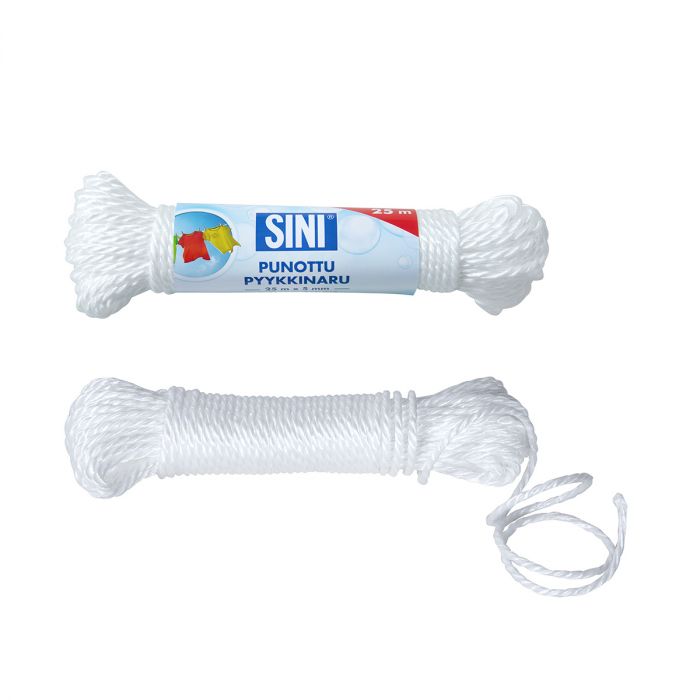 Kestävä pyykkinaru sopii sisä- ja ulkokäyttöön. Punotun pyykkinarun muovitettu pinta on helppo pitää puhtaana.
