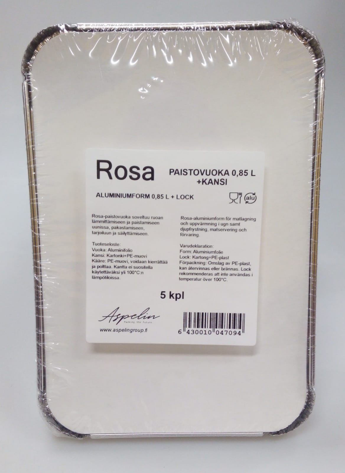 Alumiinista valmistettu mm elintarvikkeiden paitamiseen käytettävä vuoka