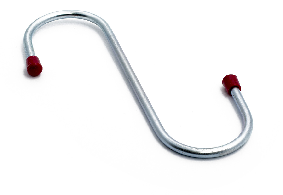 Sinkitty s-koukku teräksestä punaisilla muovipäillä