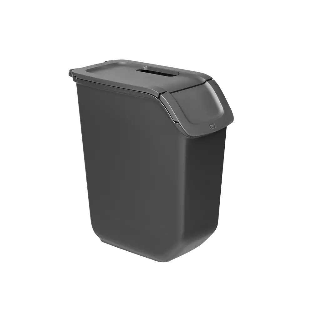 Kokoa tarpeen ja tilan mukaan – kaksi päällekkäin, monta rinnakkain. Kierrätysastia toimii yksin, mutta astioista on kätevä koota myös yhdistelmä useille jätelajeille vierekkäin ja/tai pinottuna. Kaksi kierrätysastiaa mahtuu päällekkäin useimpien keittiötasojen alle. Alimmaisen astian luukun saa auki, kun päällä on toinen astia. Astiassa on roskapussille pidikkeet. Astian kansi pysyy auki, jolloin astiaa on helppo täyttää, kantaa ja tyhjentää.