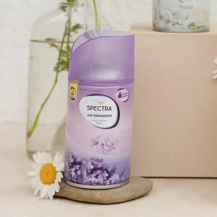 Täytä kotisi keväisellä sireenin tuoksulla Spectra Lilac -ilmanraikastimella. Hienostunut ja kukkainen lilac-tuoksu tuo raikkaan ja viehättävän tunnelman jokaiseen huoneeseen.