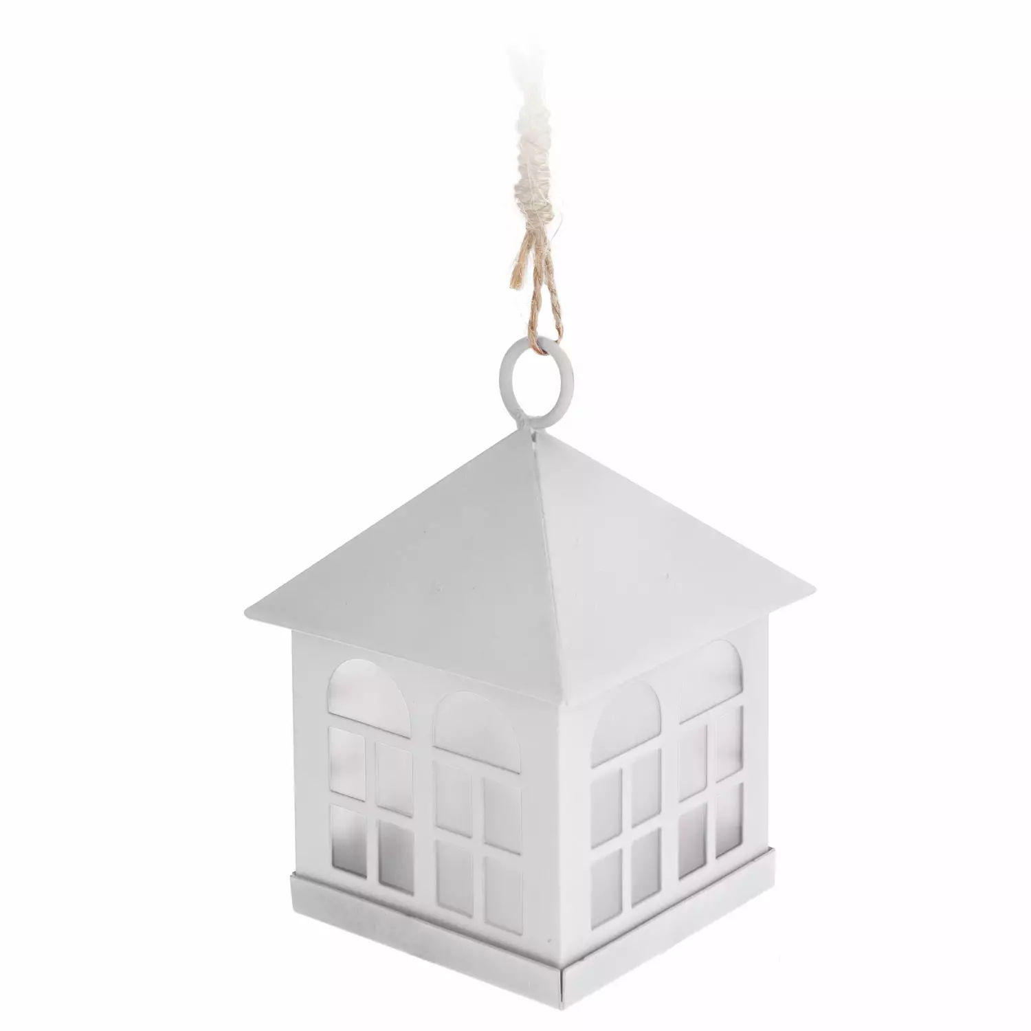 Söpö valkoinen talo LED-valaistuksella. Ripusta talo joulukuuseen tai aseta se mukavaan paikkaan sisustuksessasi. Toimii 1 nappiparistolla (mukana).