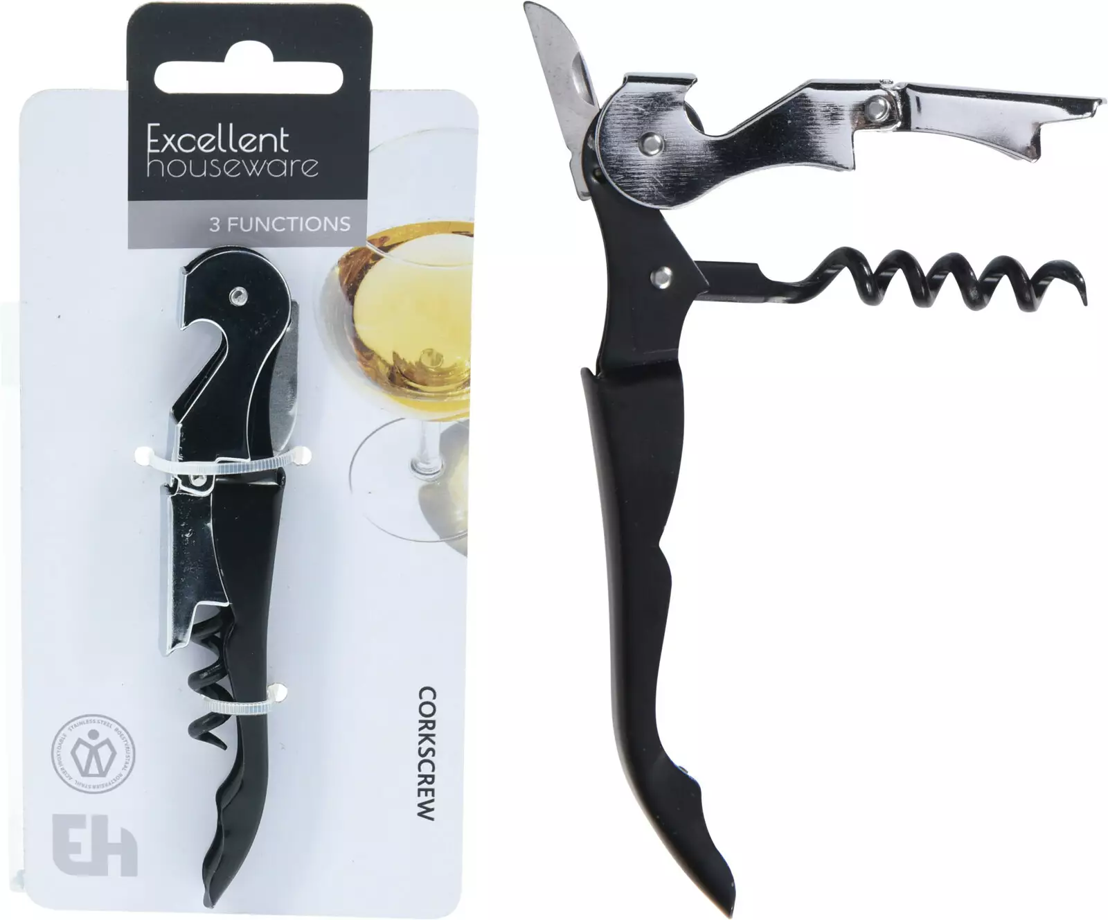 Tarjoilijan avaaja Monitoiminen korkkiruuvi, joka yhdistää mustan ja kromin värin tyylikkäästi. Kolmella toiminnolla varustettu avaaja on kätevä apuväline, joka sopii moneen eri tilanteeseen.... Lue lisää