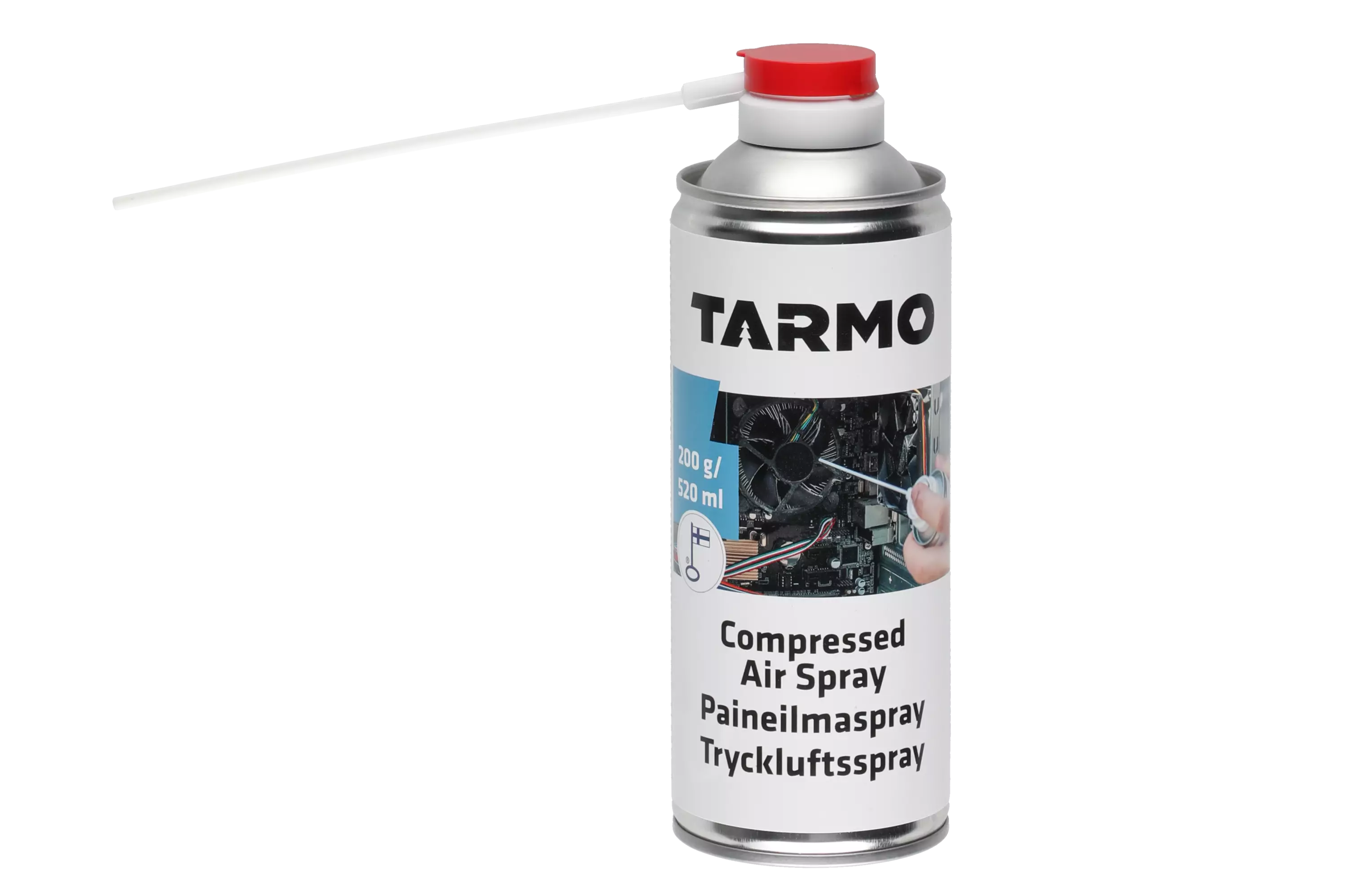 Paineilmaspray on tarkoitettu laitteiden ulkopuoliseen puhdistukseen. Soveltuu hyvin esimerkiksi toimistolaitteiden kuten tietokoneiden, näppäimistöjen, printteireiden yms. puhdistamiseen pölystä. Ennen puhdistamista irrota laite virtalähteestä. Käytä vain pystyasennossa. Erittäin helposti syttyvää! Valmistettu Suomessa.