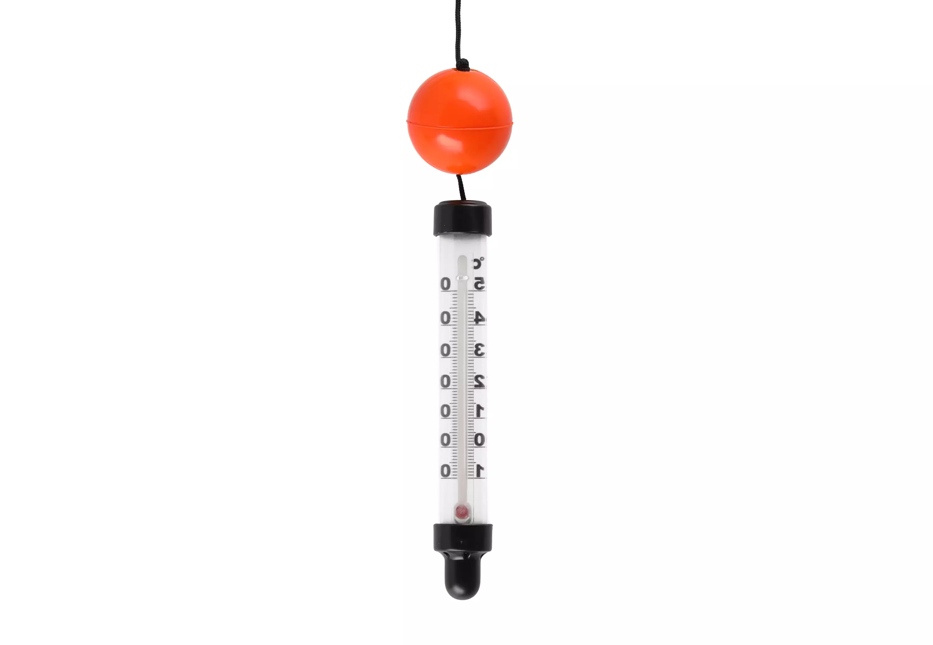 Vesilämpömittarissa on paino joka vetää mittarin pinnan alle, jolloin voidaan mitata veden lämpötila lämpimän pintaveden alapuolelta. Mittari on kiinnitetty kelluvaan punaiseen palloon. Asteikko -10°C- +50°C. Narun pituus 2 m. Mittaussyvyyttä voi muuttaa solmimalla narua.