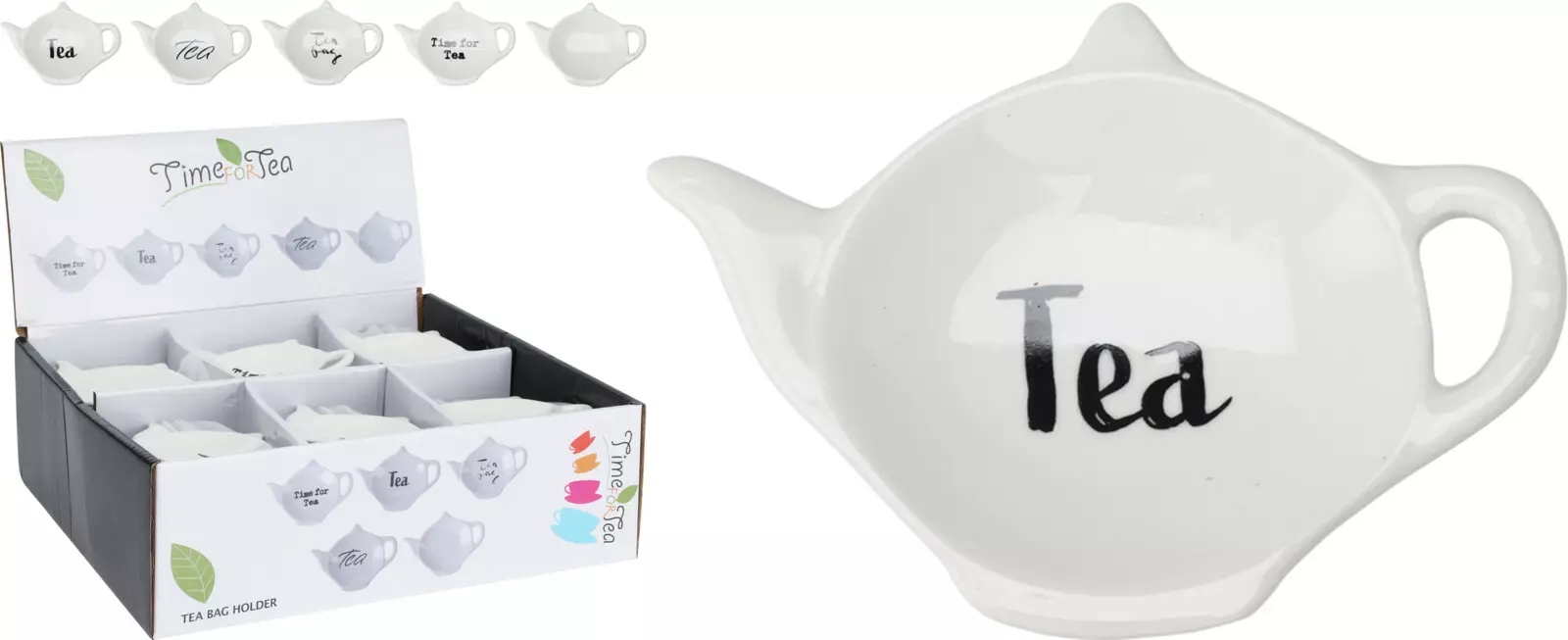 Suojaa pöytäliinasi teen tahratilanteilta näillä kauniilla, valkoisista posliinista valmistetuilla teepussinalusilla. Valittavana on neljä erilaista vaihtoehtoa, toimitus yhden kappaleen pakkauksena. Suloisen teekannun muoto tuo ripauksen iloa teehetkiin ja pidike on konepesun kestävä.