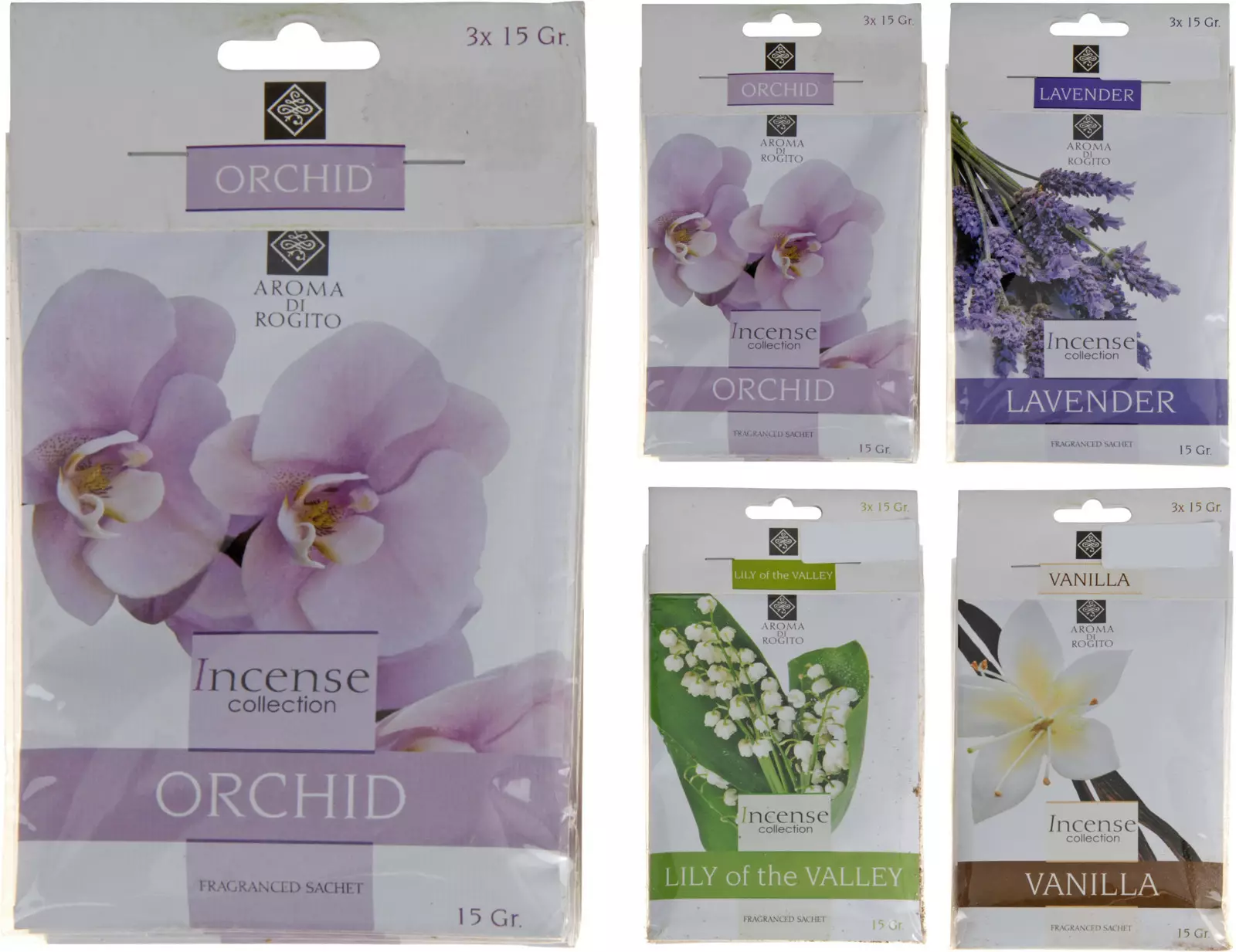 Tuoksupussi 3 kpl/pkt Tuoksupussit sisältävät tuoksupalloja, jotka tuovat raikkautta kotiin. Yksi setti sisältää kolme pussia, jokaisessa 15 grammaa. Neljä erilaista tuoksua: Vanilja, Lilja, Orkidea ja Laventeli. Pussit ovat kätevässä paperipakkauksessa, ja ne tarjoavat miellyttävän tuoksuelämyksen moneen tilaan.Valitettavasti emme voi taata tietyn mallin tai värin saatavuutta verkkokaupasta tilatessa. Voit kuitenkin kirjata lisätietoihin toiveesi tuoksusta, ja teemme parhaamme sen täyttämiseksi.
