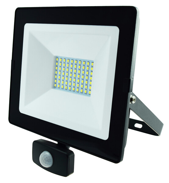 PIR-liiketunnistimella varustettu 50 W led-valonheitin valaistukseen sisällä ja ulkona. Valoteho 4000 lm. Musta runko alumiinia. Paloajan-, tunnistusherkkyyden- ja valoherkkyyden säätö. Myös PIR-tunnistimen asento säädettävissä.