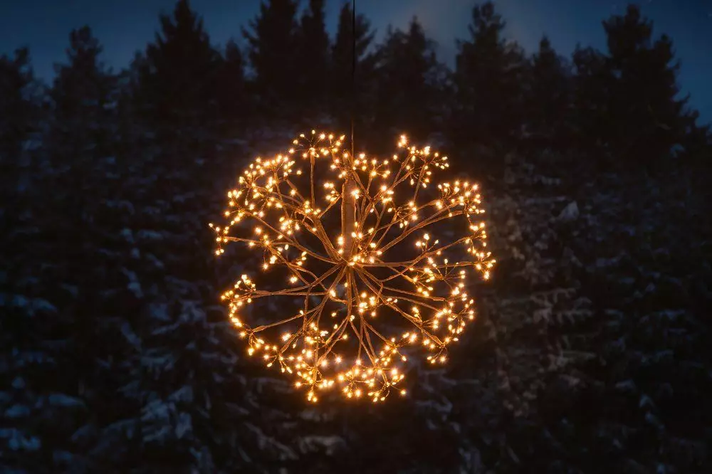 Tyylikkäässä ja näyttävässä LED-valopallossa on musta runko ja kaunis meripihkan värinen valo, joka muodostuu 480 micro-LED valosta. Valopallon halkaisija 40 cm. Pakkaukseen sisältyy 5 m liitosjohto, IP44 muuntaja sisä- ja ulkokäyttöön.