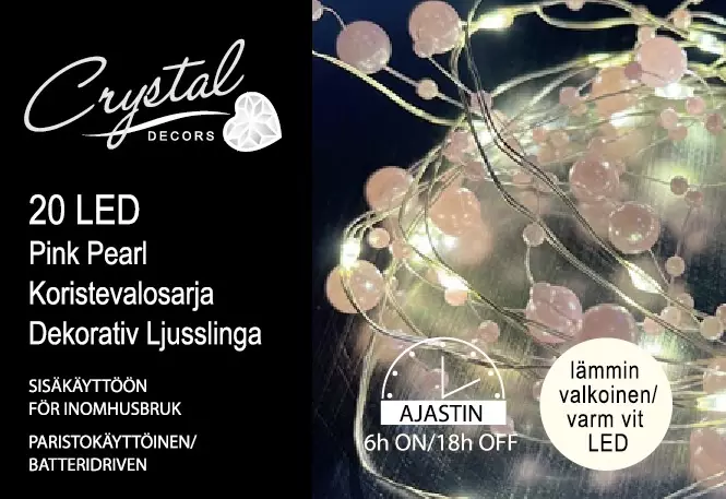 Tuo kotiisi pehmeää hehkua ja herkkää eleganssia tällä upealla Pink Pearl -lankavalosarjalla! Lämpimän valkoiset LEDit ja kauniit helmimäiset koristeet luovat tunnelman, joka sopii täydellisesti niin sisustukseen, kattauksiin kuin kauden juhlahetkiin.