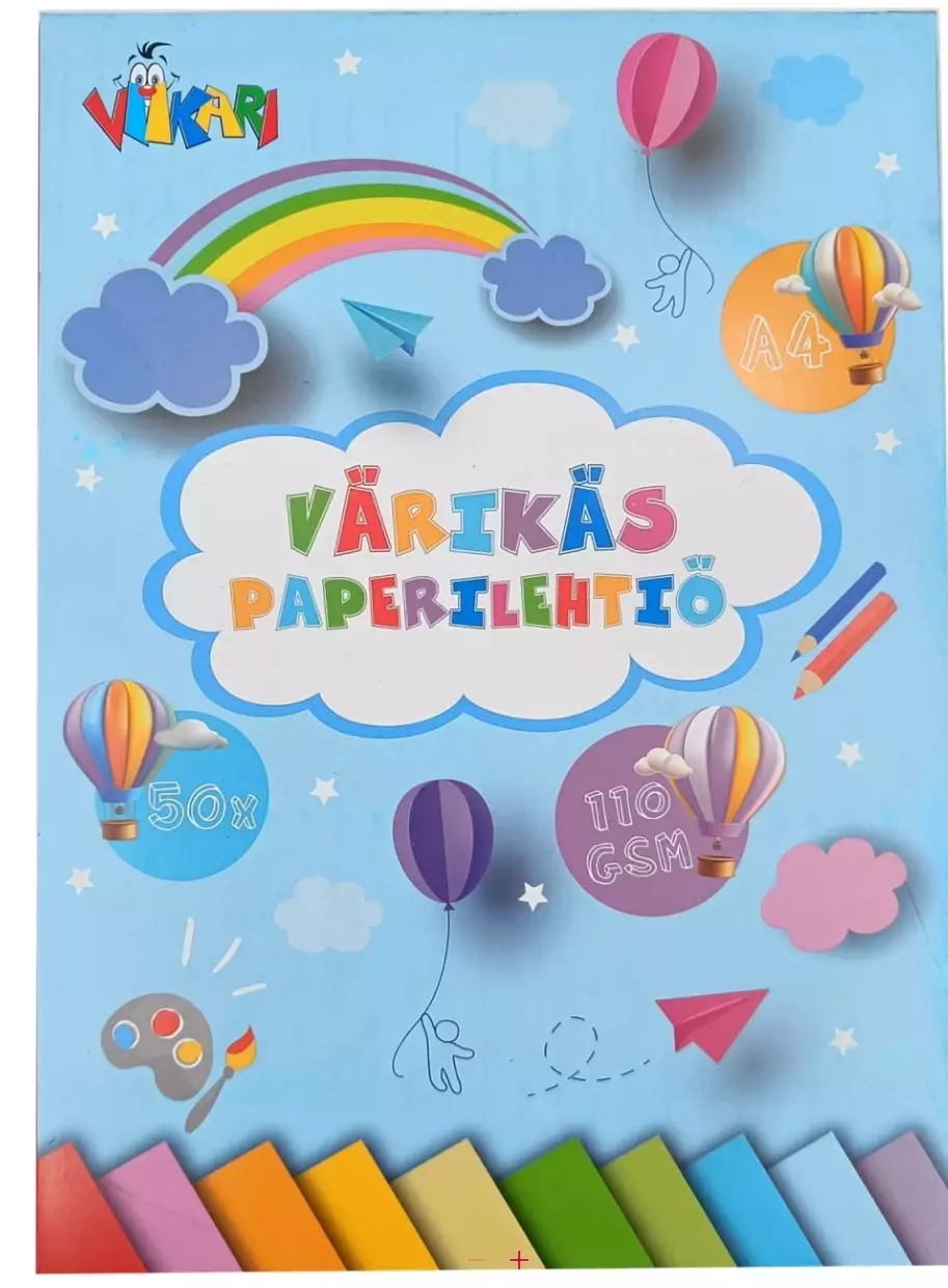 Värikäs paperilehtiö A4, sis 50 lehteä – 10 väriä (5kpl/väri), 110gsm