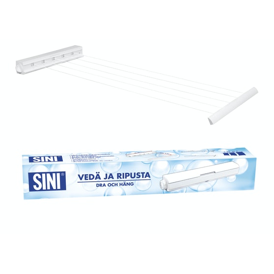 Vedä ja ripusta -kuivausteline sopii useimpiin kylpy- ja kodinhoitohuoneisiin. Kuivaustelineessä on viisi ulosvedettävää narua ja yhteensä 21 metriä kuivaustilaa. Pyykkinarut voi lukita haluttuun pituuteen. Lukitusmekanismi pitää narut kireinä. Narut saa kätevästi pois tieltä telineen sisään, kun teline ei ole käytössä.
