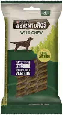 "On palkitsevaa tarjota koirallesi jotain, joka vetoaa hänen luonnollisiin vaistoihinsa pureskella, leikkiä ja jäytää. Purina Adventuros on kehittänyt kestävän Wild Chew -purutikun, joka on kääritty herkulliseen, pehmeään metsäkauriskuoreen. Koirasi rakastaa maukkaan ulkokuoren ja pehmeän sisuksen pureskelemista... aivan kuten hän tekisi luonnossa! Wild Chew auttaa pitämään hampaat puhtaina!