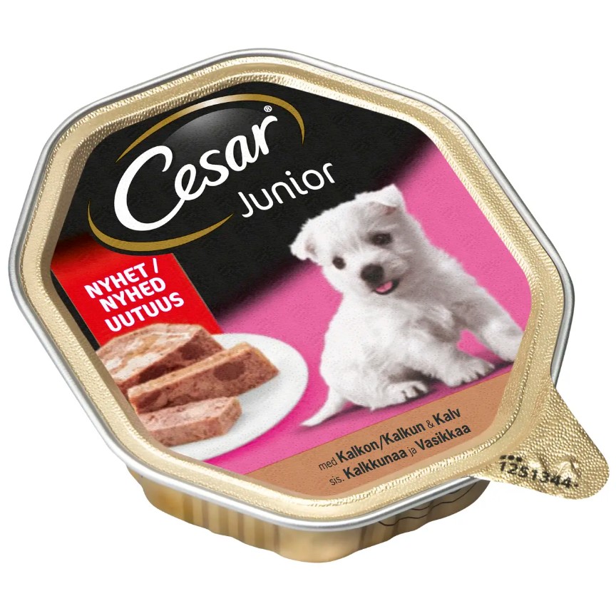 Herkullinen täysrehu koiranpennuille! Makuina maukas kalkkuna ja vasikka. Cesar Junior -ateria sisältää koiranpennulle tärkeää lihaa jopa 55%. Ravitsevasta ateriasta löytyy kaikkein parhaimmat raaka-aineet, joten pentusi tykkää tästä varmasti!