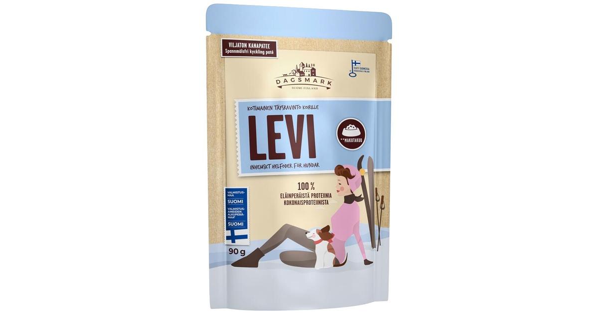 Kotimainen koiran patee koirasi hyvinvointia ajatellen. Ruoassa on maukas ja proteiinipitoinen koostumus. Kana on kasvatettu ilman antibioottia. Ruoka sisältää kaikki koirasi tarvitsemat kivennäisaineet sekä vitamiinit. Dagsmark LEVI ei sisällä viljaa, perunaa, soijaa, lisättyä sokeria, säilöntä- tai väriaineita.