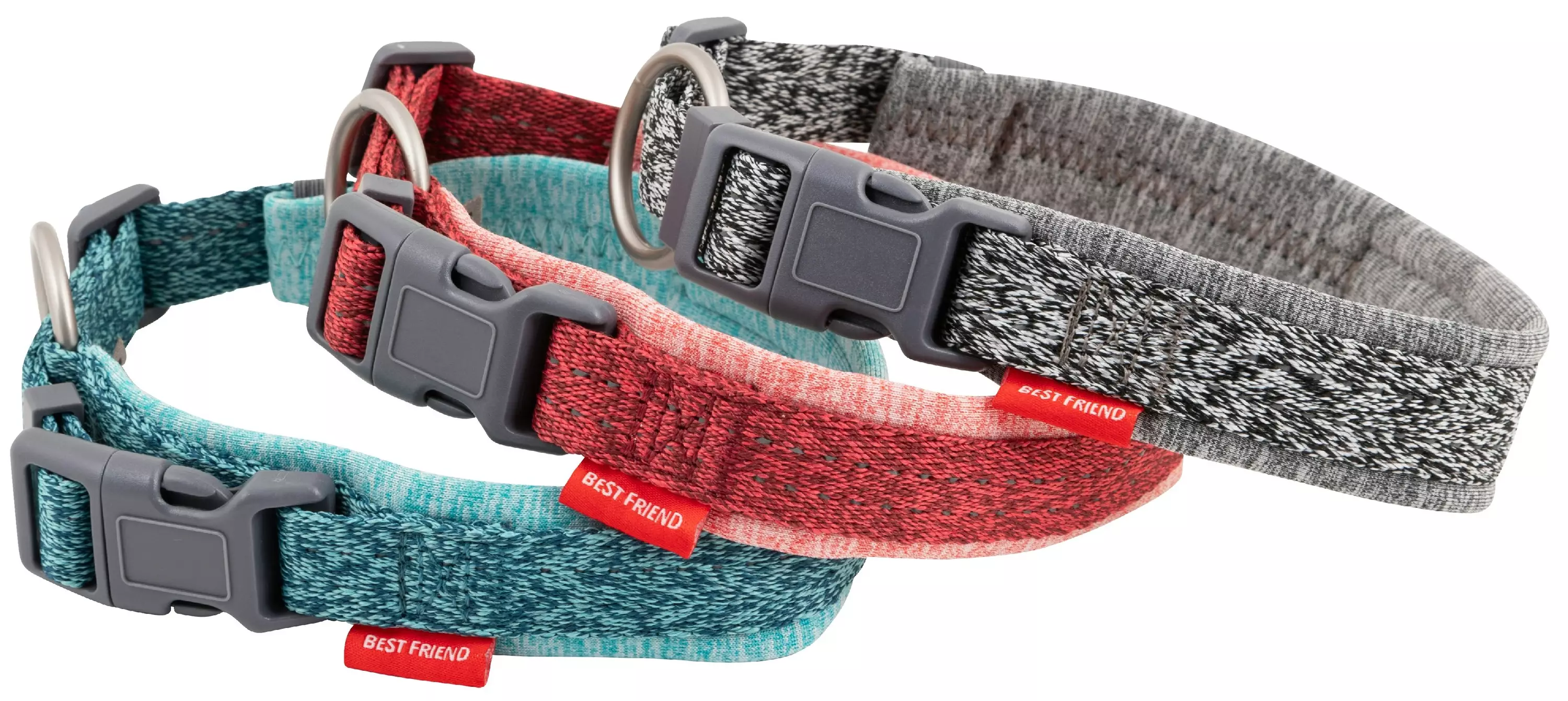 Best Friend Daily Walker koiranpanta L on pehmustettu ja laadukas panta isoille koirille. Panta sopii erittäin hyvin päivittäiseen lenkkeilyyn ja harrastuksiin, sen ergonomisen muotoilun ja kevyen neopreenipehmusteen ansiosta. Panta on miellyttävä koiralle käytössä ja pistolukollisen pannan turvalukitusmekanismi ohjaa vedon aiheuttaman rasituksen pois soljesta tehden pannasta turvallisemman ulkoilutustilanteissa. Nauhoissa olevat tehokkaat heijastimet lisäävät näkyvyyttä ja turvallisuutta pimeällä. Pannan nauhat ovat GRS-sertifioitua, kierrätettyä 100 % PET -materiaalia ja pehmuste on pehmeää neopreeniä. Kaikki Daily Walker koiran pannat ovat vetolujuustestattua laatua. Parhaan kaverin mukana kaikissa seikkailuissa! Treat with love. Värilajitelma.