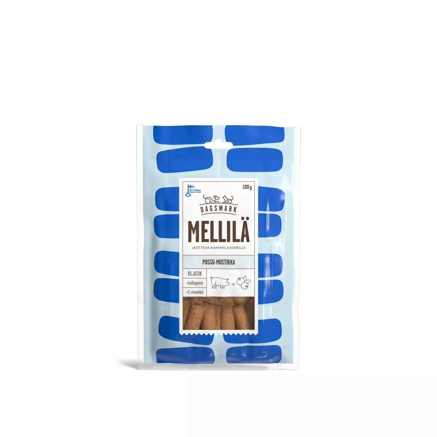 Dagsmark MELLILÄ possu–mustikka jaettava nami 100 g – kotimainen herkku koiran palkitsemiseen