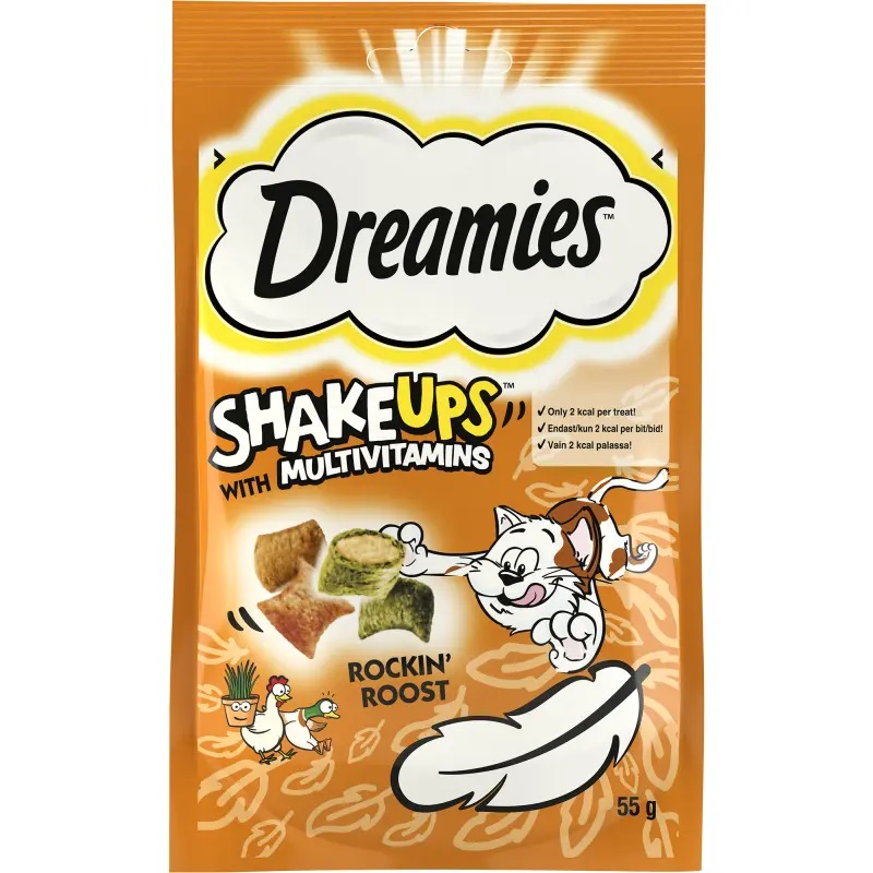 Dreamies Rockin' Roost makupalat antavat kissallesi hemmottelua aterioiden välille. Näissä herkullisissa makupaloissa yhdistyvät rapea kuori sekä pehmeä täyte, jotka vievät kissasi kielen mennessään! Makuina kana, ankka ja kissanminttu.