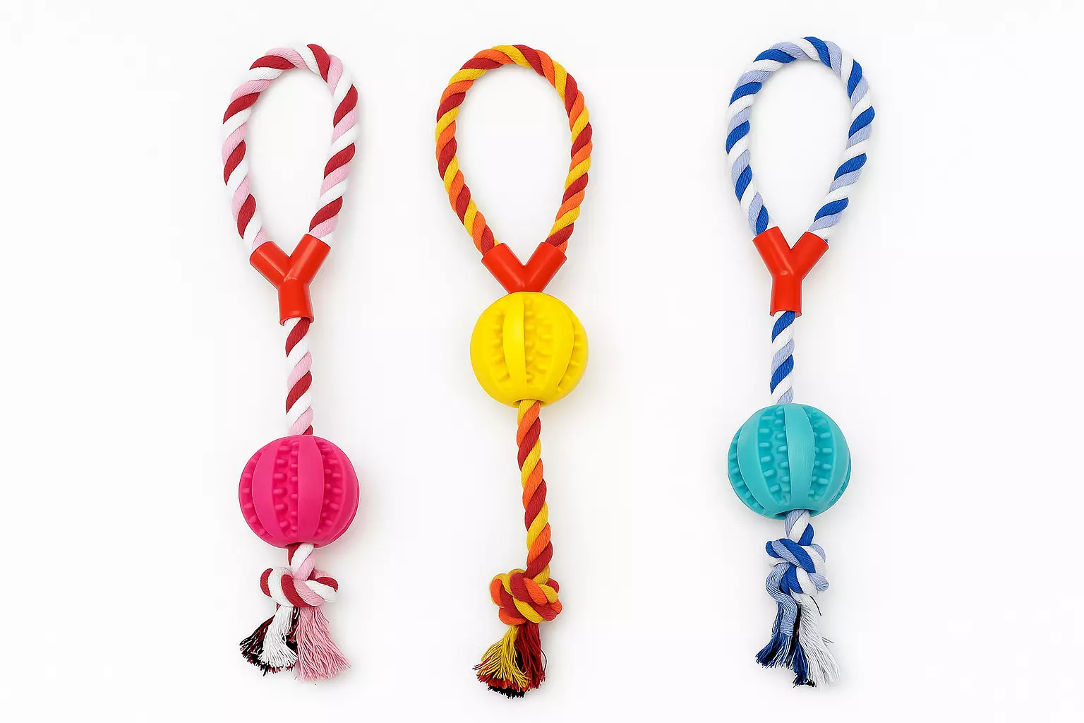 Köysi tarjoaa hyvän otteen niin lemmikille kuin omistajalle, ja pallo joustaa sopivasti leikin tiimellyksessä.