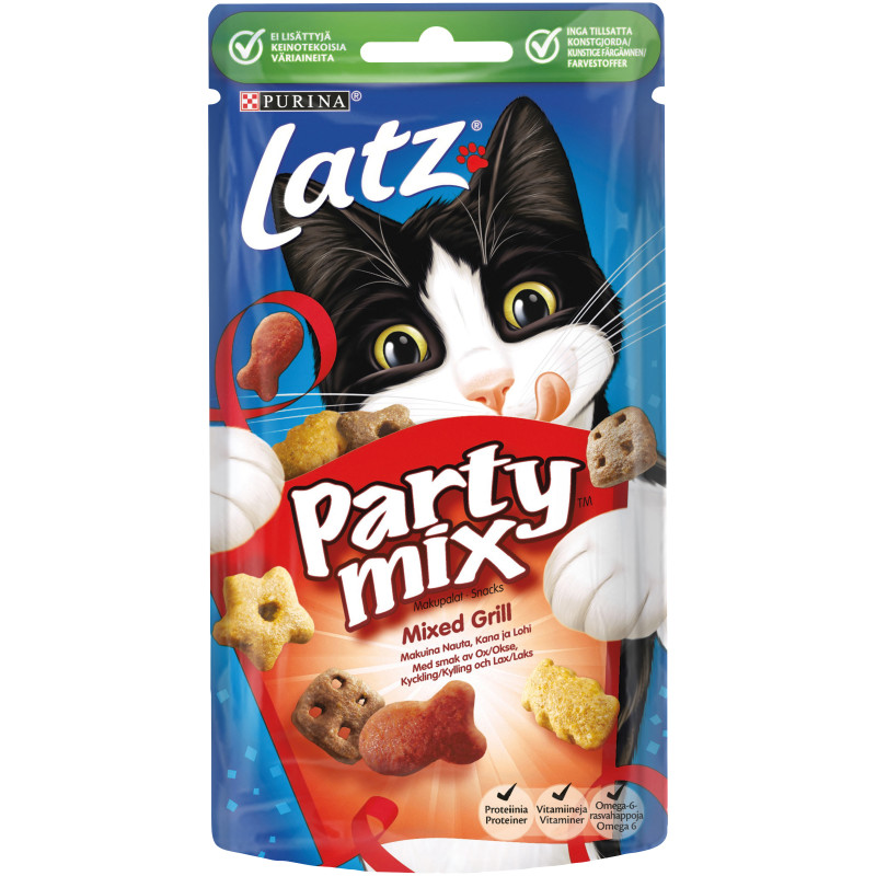 Latz 60g Party Mix snacks Mixed Grill Naudanlihan, Kanan & Lohen makuinen kissanherkku