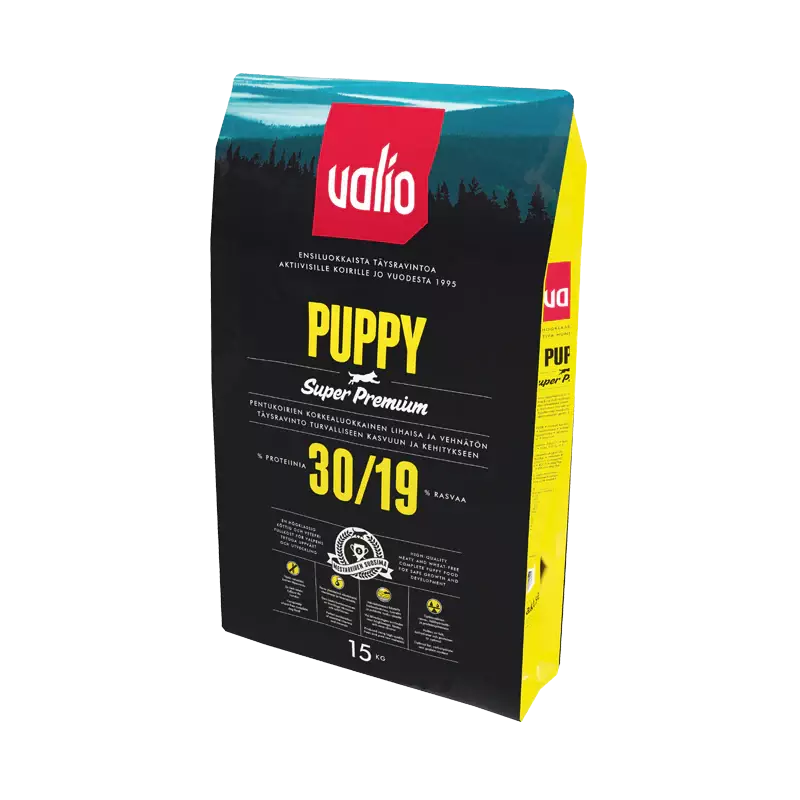 Valio Puppy on laadukas täysravinto kaikenrotuisille ja -kokoisille koiranpennuille. Ruoka sopii erinomaisesti myös kantavalle tai imettävälle emälle. Valio Puppy sisältää kaikki koiranpennun turvalliseen kasvuun ja kehitykseen tarvittavat ravintoaineet sekä tukee pennun immuunijärjestelmän kehitystä. Nappuloiden koko, muoto ja rakenne ovat optimoitu pennuille sopiviksi.
