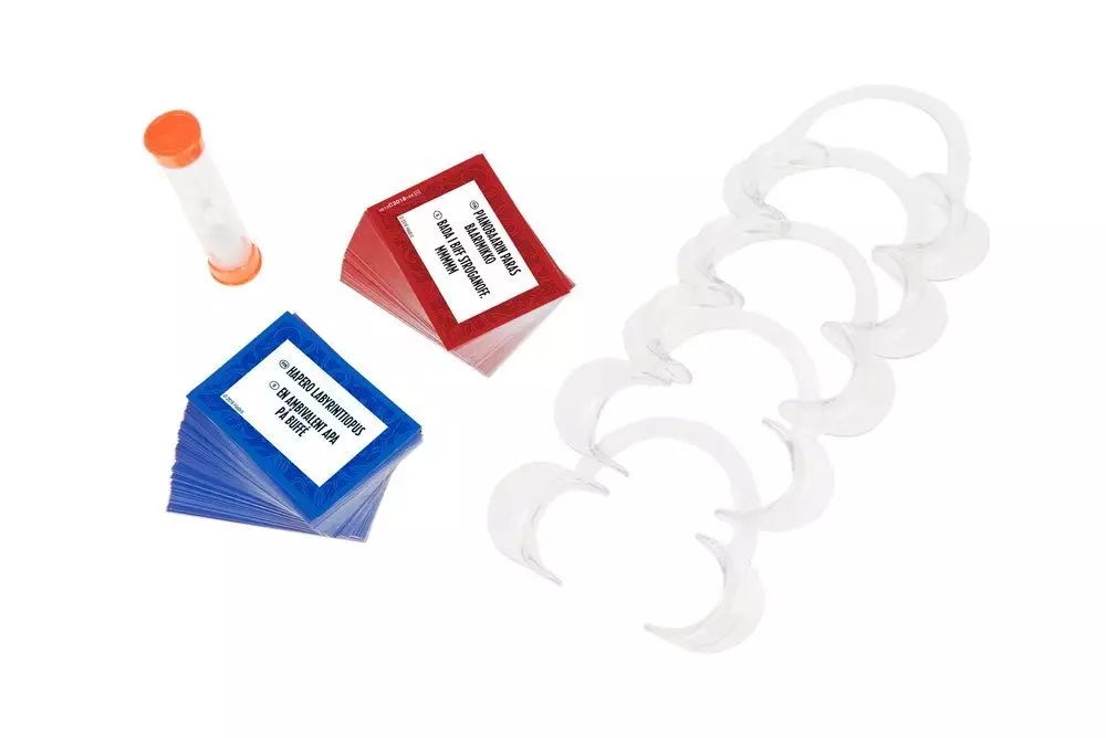 Valmistaudu nauramaan vedet silmissä! Speak Out on hulvattoman hauska seurapeli, joka pistää pelaajat todelliseen puhumishaasteeseen. Pelissä suukappale estää suun normaalin liikkeen, ja pelaajien tehtävänä on silti yrittää saada tiimikaverit ymmärtämään sanotut lauseet – helpommin sanottu kuin tehty!